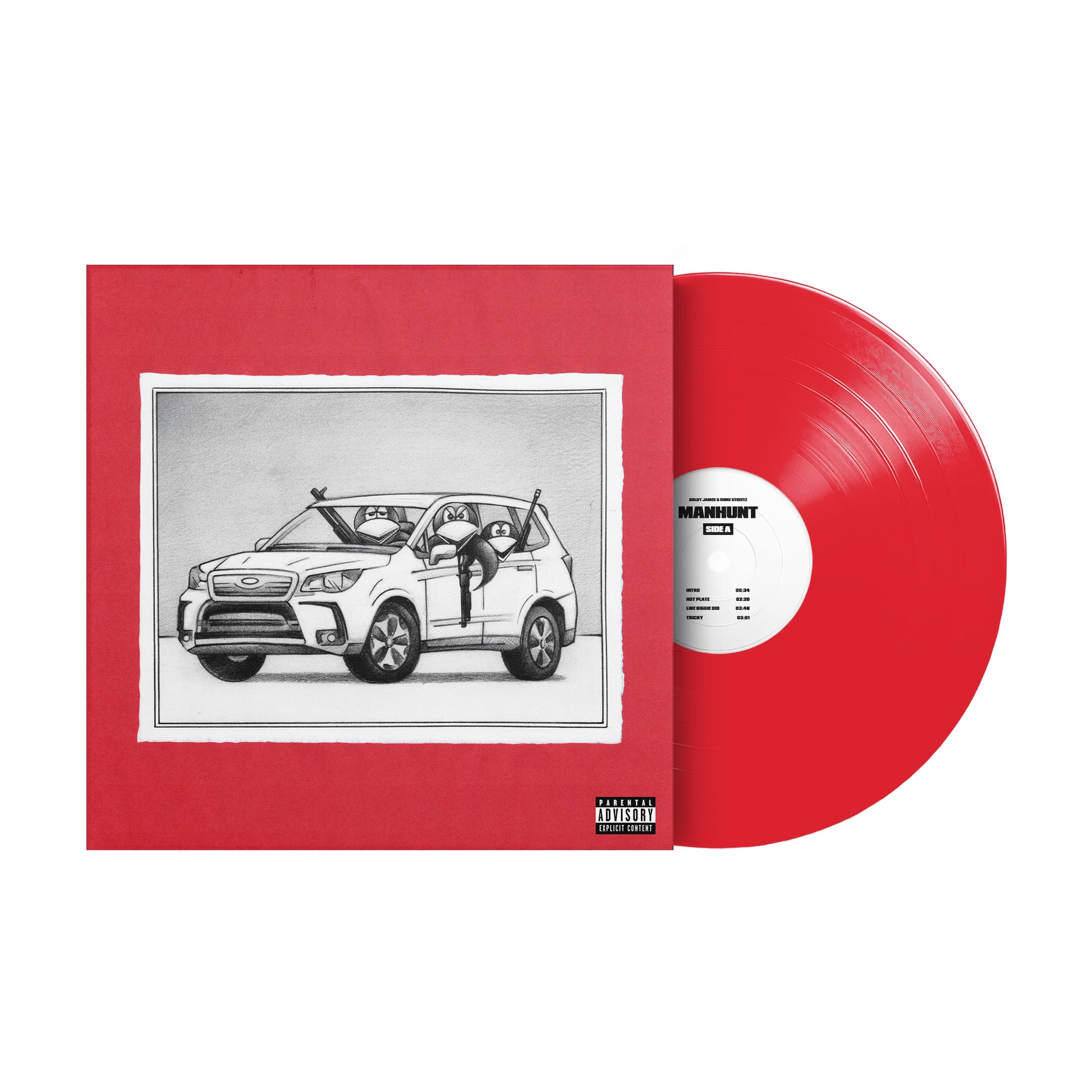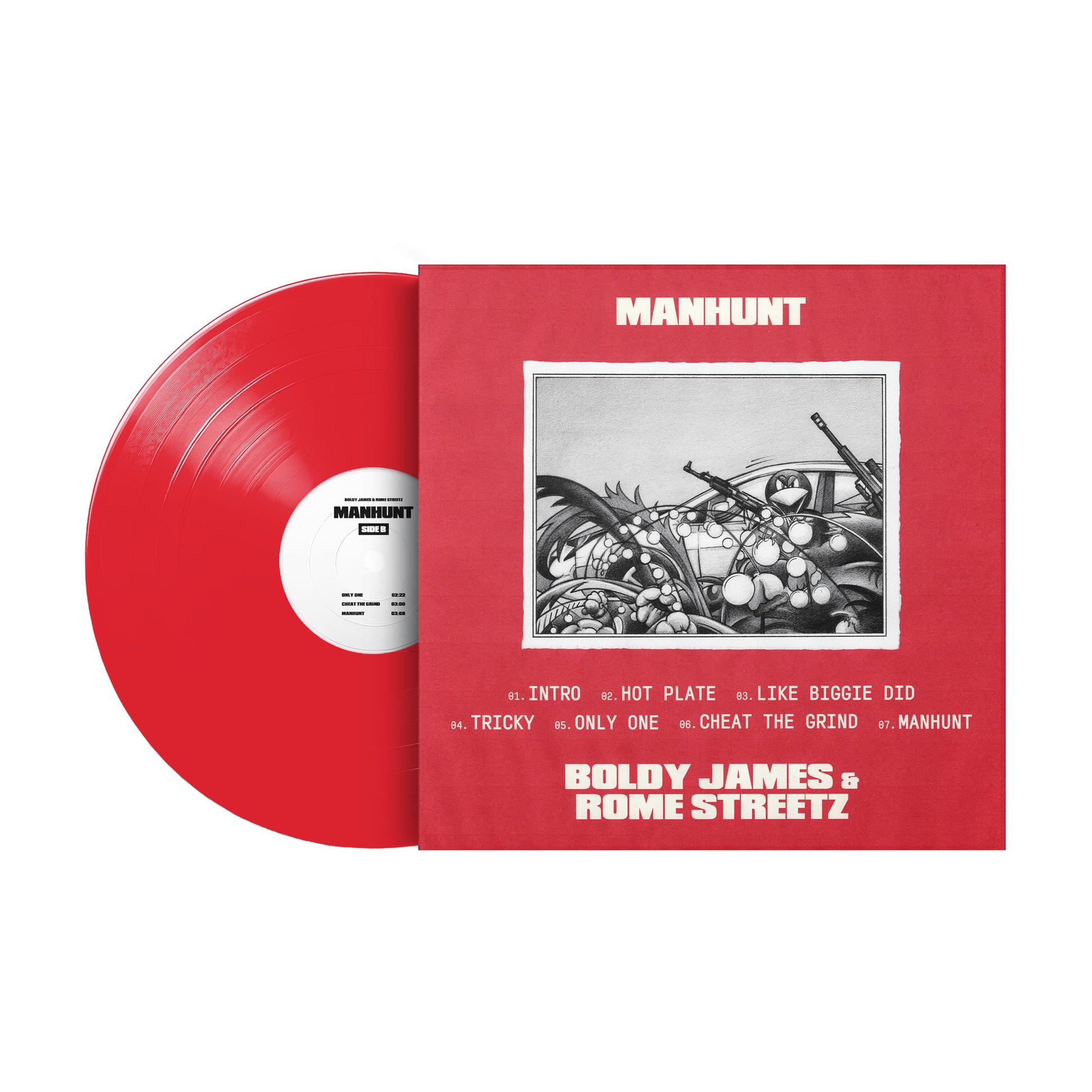 - Bundle includes 1 Special Edition Red Manhunt Vinyl and 1 Manhunt Hoodie